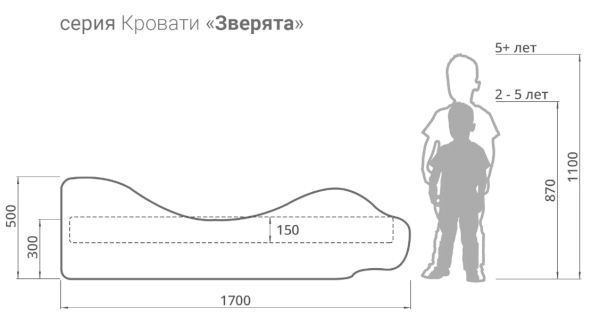 Размер кровати (ДхШхВ): 1700х730х500 мм