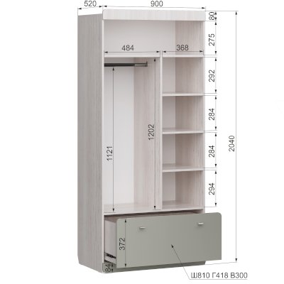 Наполнение шкафа выдвижные ящики / штанга