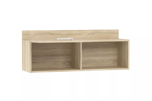 Полка органично дополнит рабочее место в детской. Закрытая секция модуля подойдет для хранения книг. Газлифты максимально высоко поднимают фасад вверх, обеспечивая большую площадь обзора содержимого. Предметы декора будут хорошо смотреться в открытой секции полки.