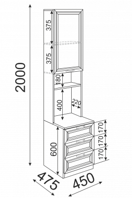 • За верхним распашным фасадом одна съемная полка.